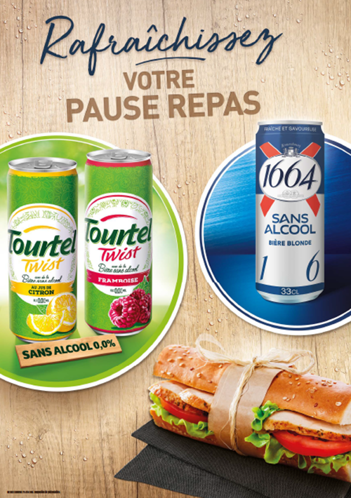 Kronenbourg SAS implante 1664 blonde sans alcool et Tourtel Twist au rayon snacking